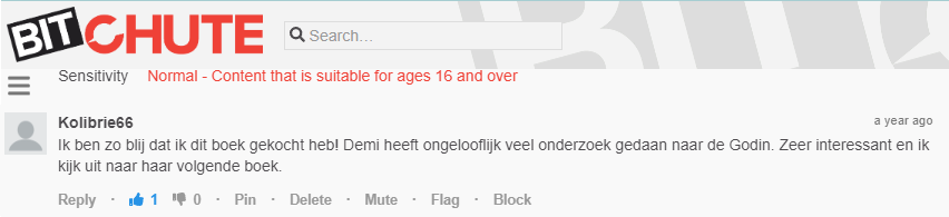 Deze leuke reactie verscheen op mijn Bitchute-kanaal: