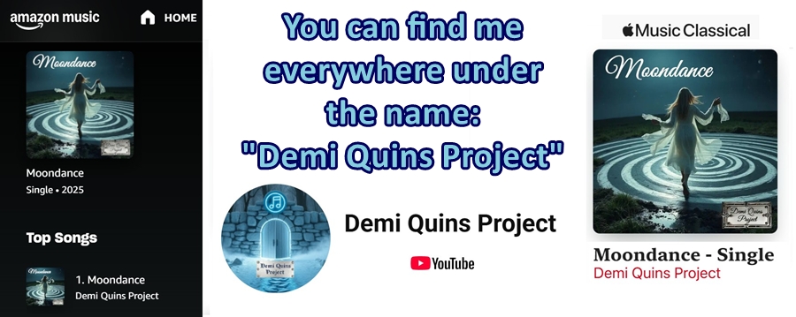 I want to let everyone know that I’ve signed a contract with a music distributor and my songs are now available on many streaming services: Spotify, TikTok, Deezer, Apple Music, Tidal, Amazon Music, and many more. You can find me everywhere under the name “Demi Quins Project.”